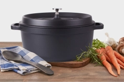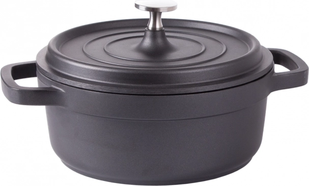 Praktický hrnec o objemu 2,2 l z odolného hliníkového odlitku s nepřilnavým povrchem pro snadné vaření i pečení. Vhodný na všechny typy sporáků včetně indukce a do trouby. Nabízí rychlý ohřev, rovnoměrné rozložení tepla a bezpečné, ergonomické úchyty.