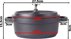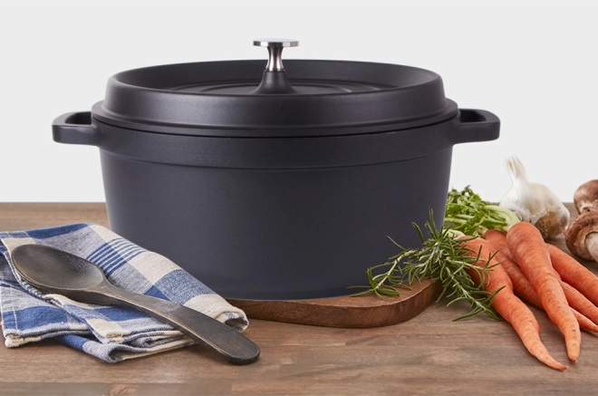 Hrnec je vhodný pro indukční, plynové, elektrické, sklokeramické i halogenové vařiče a lze jej používat také v troubě.