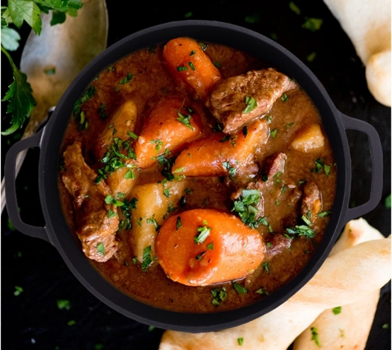 Ergonomické rukojeti zajišťují pohodlné a bezpečné přenášení, robustní víko pomáhá udržet teplo i aroma uvnitř hrnce.