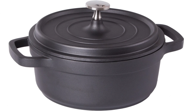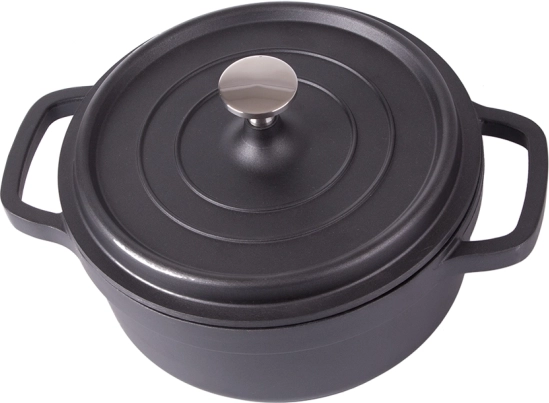 Tento univerzální hrnec s robustním víkem je skvělou volbou pro každodenní vaření, dušení i pečení. Odlitek z hliníkové slitiny se zahřívá rychle a rovnoměrně, zatímco nepřilnavý povrch zajišťuje pohodlné vaření s minimem tuku a snadné čištění. Díky elegantnímu černému provedení se hodí do každé kuchyně.