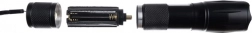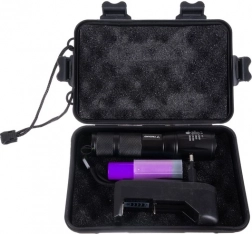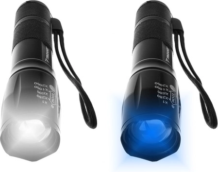 SPECIFIKACE- barva svítilny: černá; dioda: CREE XPE 5W; barva světla: bílá a UV; pouzdro: hliník; dosah: 200-300m (v závislosti na povětrnostních podmínkách); životnost diody: 100 000h, přes 11 let svícení; napájení: baterie (3x AAA nejsou součástí balení) nebo dobíjecí 120 mAh; rozměry svítilny (délka / šířka): 13-14 x 3 cm; rozměry balení (délka/šířka/výška): 18 x 12 x 5 cm; hmotnost: 67g; hmotnost s obalem: 241 g.