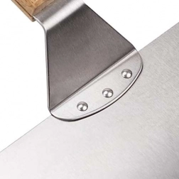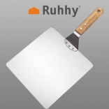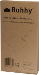 Praktická lopata na pizzu RUHHY z kvalitní nerezové oceli s ergonomickou dřevěnou rukojetí a silikonovou chňapkou pro bezpečné manipulace. Ideální pro domácí i profesionální pečení – umožňuje stabilní přenášení pizzy, chrání před horkem a skvěle poslouží i pro koláče, chleba a další pečivo. Díky tenké nerezové ploše snadno zasunete pod těsto a udržíte perfektní tvar i topping.