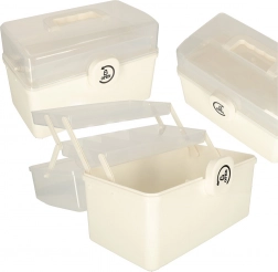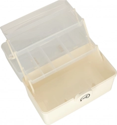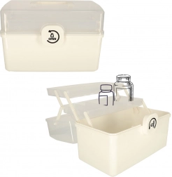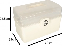 Transparentní víko vám umožní rychle najít vše potřebné, aniž byste museli organizér otevřít. Praktická rukojeť umožňuje snadné přenášení nejen v domácnosti, ale i na cestách nebo výletech. Vnitřní vybavení obsahuje výškově nastavitelné přepážky pro lepší organizaci.