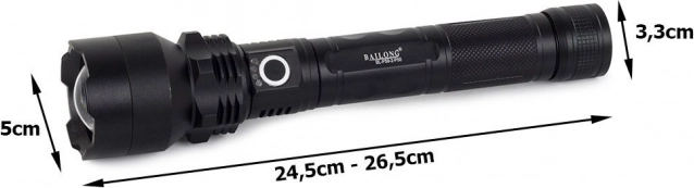 Tato taktická LED svítilna je navržena pro náročné použití v přírodě, při službě i v domácnosti. Špičková dioda CREE XHP50 poskytuje silný a soustředěný paprsek s dosvitem až 1000 m, zatímco plynulý zoom vám umožní rychle přepnout z širokého kužele na dlouhý bodový dosah.