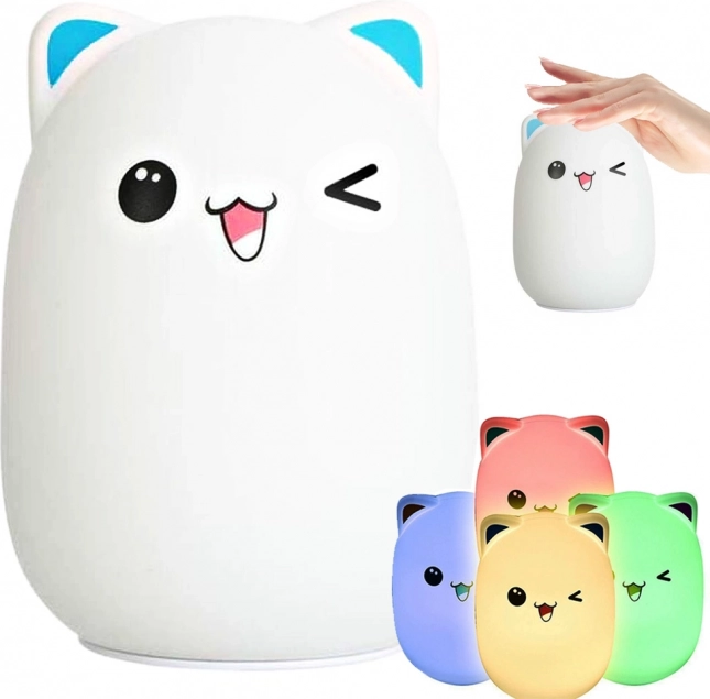 Tato roztomilá kočičí lampička je vyrobena z měkkého, na dotek příjemného silikonu, který je pevný, odolný a bezpečný pro děti. Díky kompaktním rozměrům se perfektně hodí na noční stolek i do dětské postýlky. Lampička jemně svítí a pomáhá dětem klidně usínat bez strachu ze tmy.