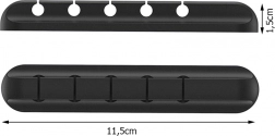 Rozměry 11,5 × 1,5 cm šetří místo, zatímco pružný plast šetrně fixuje kabely do průměru 5 mm. Držák je nenápadný, ale maximálně účinný.