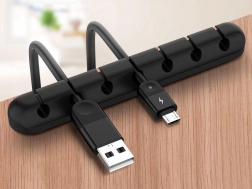 Praktický organizér kabelů s pěti drážkami udrží USB, nabíjecí i další tenké kabely vždy po ruce a zabrání jejich padání za hranu stolu. Díky pružnému materiálu kabely pevně obejme, ale zároveň umožní jejich rychlé vyjmutí, když je potřebujete připojit.