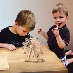 Obtížnost: 3 z 5 podle hodnocení Robotime. Rozměry složeného puzzle: 15,5 x 6,2 x 16,5 cm. Součástí balení je detailní obrázkový návod.