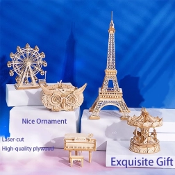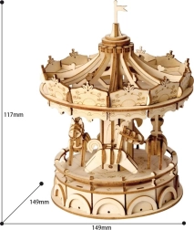 Rolife 3D Dřevěné Puzzle Kolotoč je elegantní model pro všechny milovníky puzzle a mechanických hraček. Vytvořte si vlastní dekorativní kousek, který zaujme svým detailním zpracováním a přirozenou krásou dřeva.