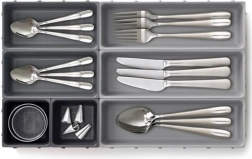 Udržte si v kuchyni dokonalý pořádek díky modulární sadě organizérů do zásuvky. Sada 10 kontejnerů v odstínech šedé a bílé umožňuje flexibilní uspořádání příborů, kuchyňského náčiní i drobností. Díky chytrým háčkům je rychle propojíte, jsou odolné, snadno se čistí a skvěle šetří místo.