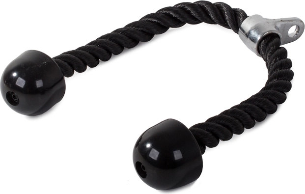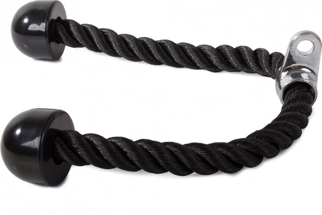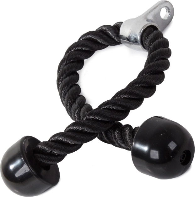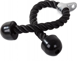 Toto tricepsové lano je vyrobeno z hustě tkaných nylonových vláken, což zaručuje jeho odolnost a dlouhou životnost. Je navrženo pro kulturistické cvičení paží a břišních svalů, což jej činí univerzálním doplňkem pro posilovací stroje a atlas.
