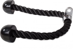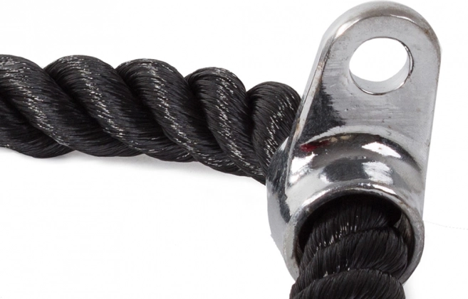 Tricepsové lano je dodáváno s gumovými koncovkami pro lepší kontrolu a bezpečnost během cvičení.