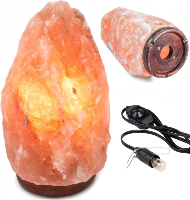 Himálajská solná lampa je pečlivě vyrobená z hroudy přírodní himálajské soli a nabízí záři, která připomíná uklidňující západ slunce. Lampa je umístěna na pevném dřevěném podstavci, což zajišťuje její stabilitu a estetický vzhled.