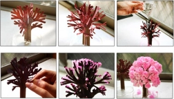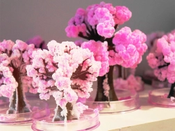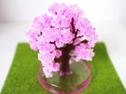 Po zalití se během několika hodin vytvoří jemné růžové krystaly, které napodobují rozkvetlou sakuru a promění jednoduchý stromek v efektní dekoraci.