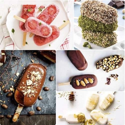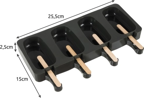 Čtyři samostatné komory umožní připravit různé příchutě najednou, od jogurtových po ovocné nebo sorbetové. Díky otvorům pro tyčinky na konci formy je plnění i usazení dřívek rychlé a čisté. Balíček obsahuje 50 dřevěných tyčinek, takže můžete začít hned a dlouho vydrží.