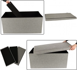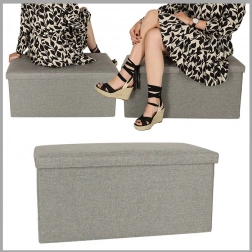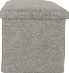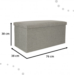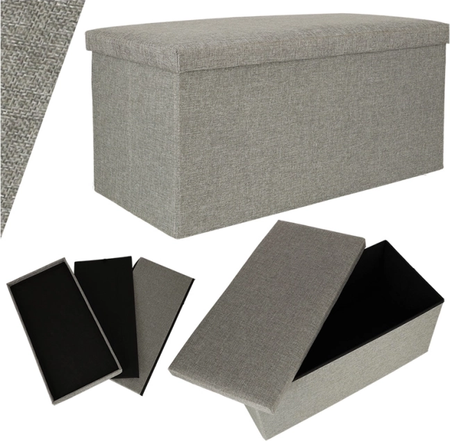 Tento skládací úložný puf je ideálním řešením pro ty, kdo hledají funkční a elegantní doplněk do svého interiéru. Nabízí pohodlí a praktičnost – poslouží jako podnožka, místo ke sezení nebo úložný prostor pro nejrůznější drobnosti. Nezabírá moc místa a jeho šedá barva se hodí do každého pokoje.