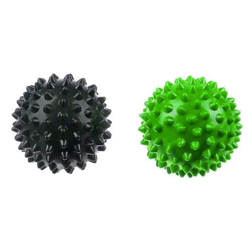Dva ježkové míčky (každý s 78 výstupky) promasírují chodidla, lýtka, bedra i šíji. Pomáhají snižovat svalové napětí a zlepšují mobilitu.