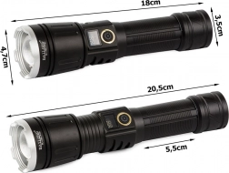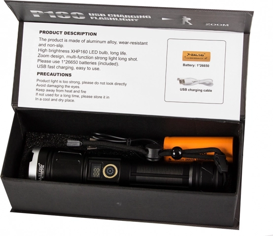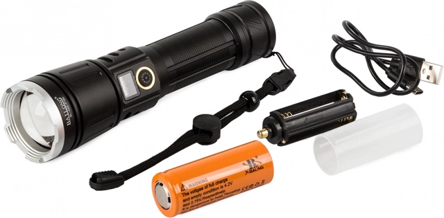 Objevte výhody této vysoce kvalitní svítilny, která je vyrobena z leteckého hliníku a nabízí protiskluzový povrch. Disponuje funkcí powerbanky, což znamená, že může nabíjet vaše mobilní zařízení v případě nouze. S výkonným zoomem, který umožňuje úzký paprsek s dosahem až 1000 metrů, je ideálním nástrojem pro osvětlování velkých prostor.