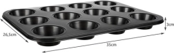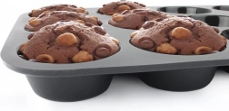Forma má 12 otvorů o průměru 6,7 cm, což umožňuje rovnoměrné zahřívání a snadné vyjmutí pečiva. Je vyrobena z vysoce kvalitního teflonu, který je odolný a snadno se čistí.