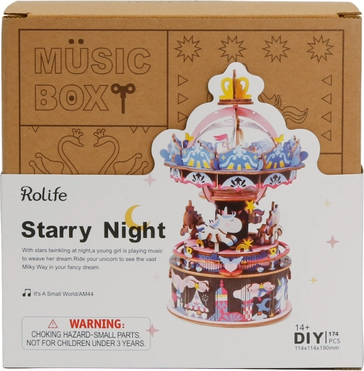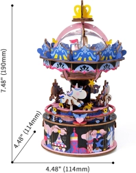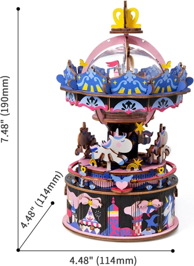 Tento detailní model veselého kolotoče od značky Robotime je ideální volbou pro každého kreativního nadšence. Skládanka je dodávána nesložená a je vybavena podrobným návodem k sestavení. Po sestavení se kolotoč stane skvělou ozdobou vašeho prostoru.
