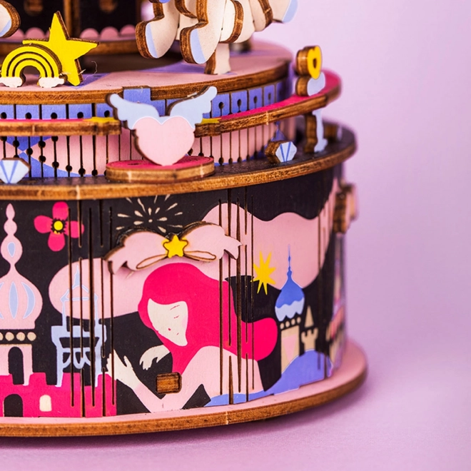 Robotime 3D skládačka Veselý kolotoč je jedinečný model kolotoče, který potěší každého milovníka hracích skříněk. Sestavte a vychutnejte si známou melodii ve spojení s pohyblivými detaily.