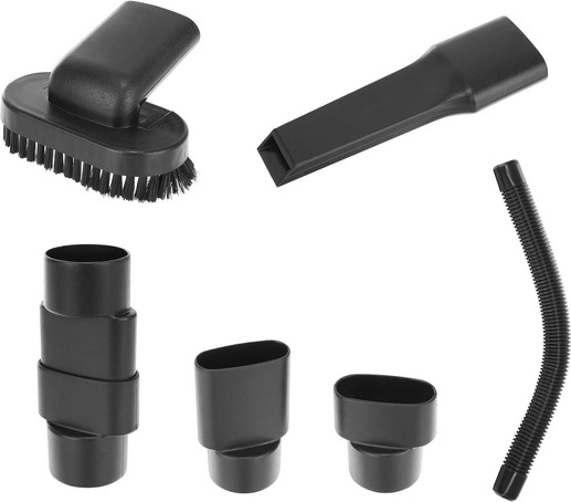 Obsahuje štěrbinové, kartáčové nástavce a flexibilní hadici pro úklid těžko dostupných míst.