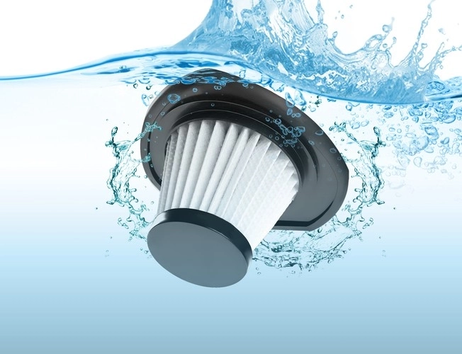 Díky HEPA filtru zachytí i ty nejjemnější prachové částice a chrání motor před poškozením. Filtr je snadno omyvatelný pod vodou.