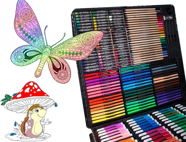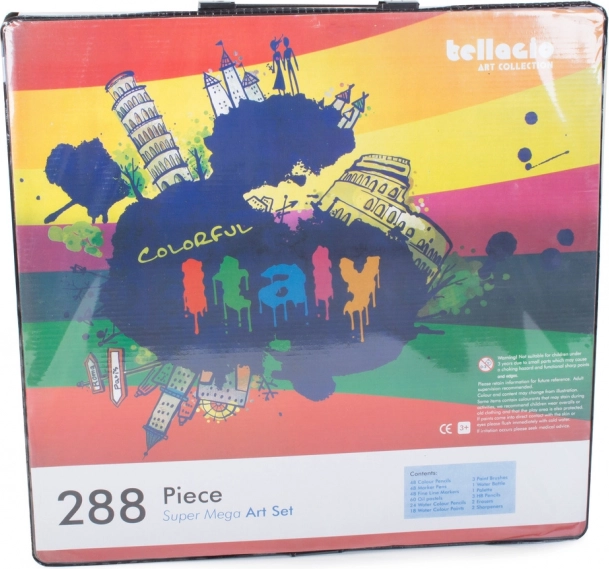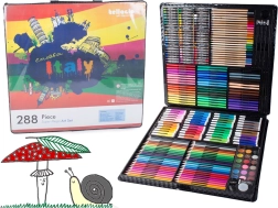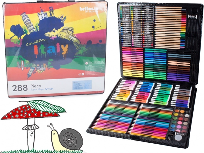 Obsahuje vše potřebné pro rozvoj kreativity: pastelky, fixy, olejové pastely i akvarelové barvy – celkem 288 prvků.