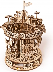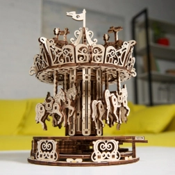Ornamentální laserové gravury, přírodní dřevo a klasický motiv kolotoče z něj dělají poutavou ozdobu vitríny či dětského pokoje.