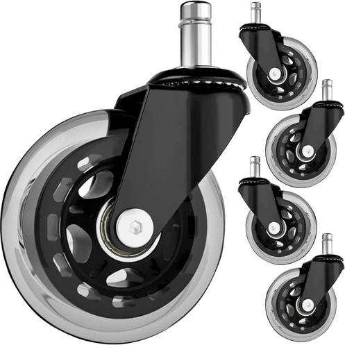 Představujeme vám sadu pěti kancelářských koleček, které přemění váš stávající kancelářský nebo herní židli na elegantní a funkční řešení. Díky kaučukové konstrukci poskytují tyto kolečka tichý pohyb a chrání všechny typy podlahy.