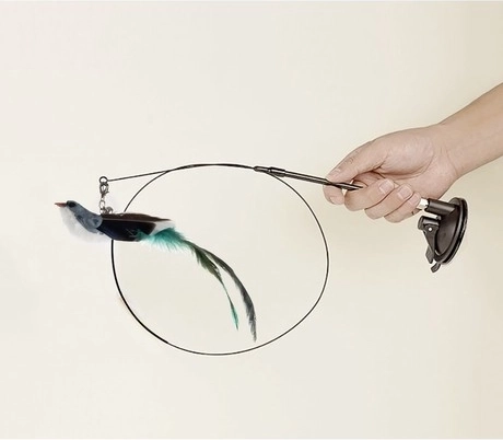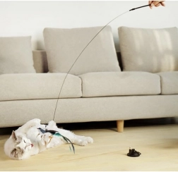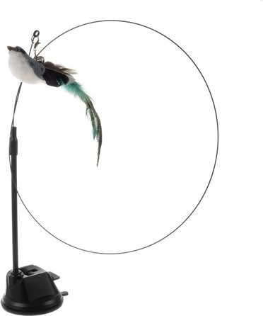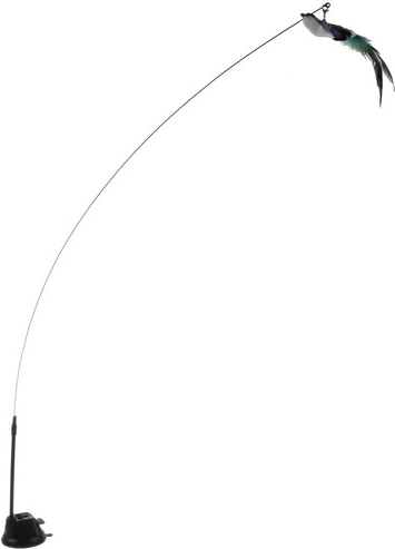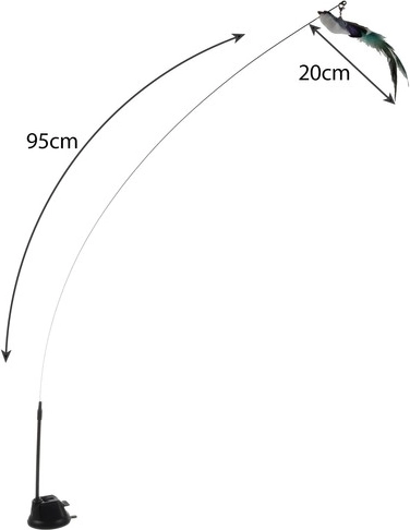 Dlouhá elastická hůlka s atraktivními prvky na konci upoutá pozornost kočky a povzbudí ji ke skokům a chytání. Ptáček zdobený dlouhým peřím a jemným zvonečkem dodává na přitažlivosti.
