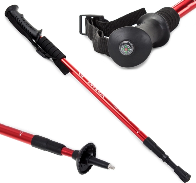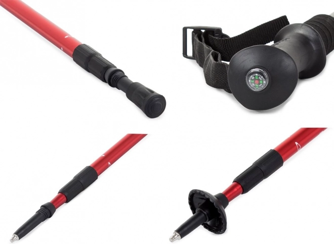 Lehké a odolné teleskopické hole pro nordic walking v červené barvě nabídnou snadné nastavení délky 64–135 cm, anti-shock systém pro ochranu kloubů a integrovaný kompas pro lepší orientaci v terénu. Ergonomická rukojeť s měkkým poutkem zvyšuje komfort, tři vyměnitelné koncovky zajistí jistý krok na asfaltu, sněhu i písku.