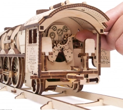 UGEARS V-Express je výjimečná dřevěná stavebnice pro náročné, která propojuje kouzlo klasické železnice s chytrou mechanikou. Odhalený „plášť“ lokomotivy umožňuje sledovat chod převodů, soukolí a klikového mechanismu v akci. Díky natahovacímu motoru se model skutečně rozjede a nabídne realistický zážitek z jízdy včetně volnoběhu a zpátečky.
