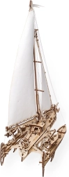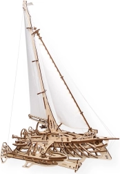 Plachetnice Merihobus od Ugears je elegantní dřevěný model trimaránu s výrazně realistickým zpracováním. Svinutelné plachtoví v zářivě bílé barvě, funkční kormidlo a důmyslné ovládání ráhen vytváří atraktivní kombinaci estetiky a mechaniky. Každý díl do sebe přesně zapadá bez nutnosti lepidla, stavba je proto čistá a zábavná.