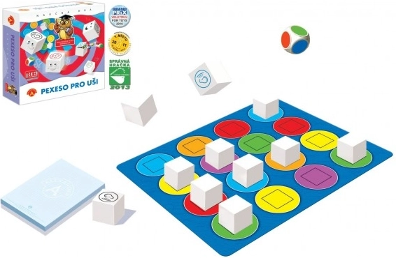 Pexi Pexeso pro uši je unikátní naučná hra pro děti od 4 let, která nejen pobaví, ale také rozvíjí sluchovou paměť a dovednosti v rozpoznávání zvuků. S touto hrou se malí hráči naučí pozorně naslouchat a procvičí si svou schopnost rozlišovat různé zvuky s pomocí zvukových kostek a barevné hrací desky.