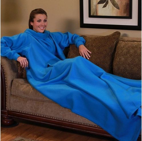 Tato praktická deka s rukávy je navržená pro maximální pohodlí. Na rozdíl od klasických dek při pohybu nesklouzává a díky prostorným rukávům zůstávají ruce volné na čtení, ovládání telefonu nebo dálkového ovladače. Měkký fleece příjemně hřeje a je ideální pro chladné večery.