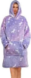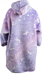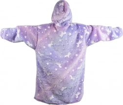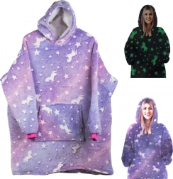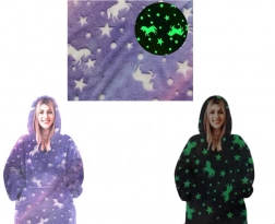 Praktická přední kapsa udrží ruce v teple a pojme telefon či ovladač. Vzor jednorožců a hvězd potěší na pohled a díky fluorescenčním detailům svítí ve tmě – zábava pro děti, útulno pro dospělé. Snadná údržba, lze prát v pračce, barvy i měkkost si drží po dlouhou dobu.