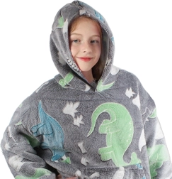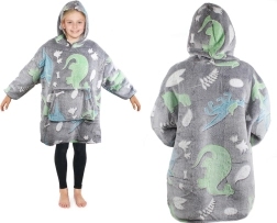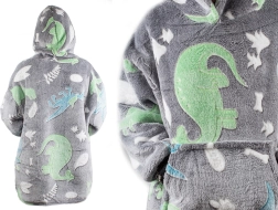 Praktická kapuce chrání hlavu před chladem a poslouží i jako polštářek. Prostorné rukávy a univerzální velikost zajišťují komfort pro kluky i holky. Potisk s dinosaury má fluorescenční prvky, které po nasvícení ve tmě září.