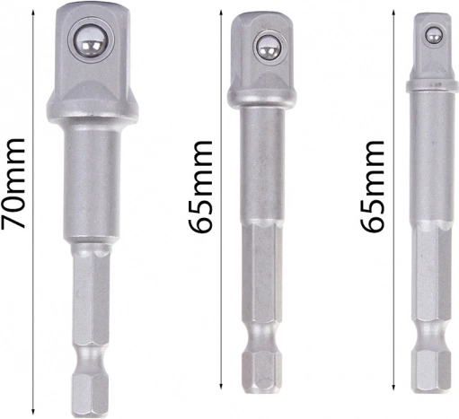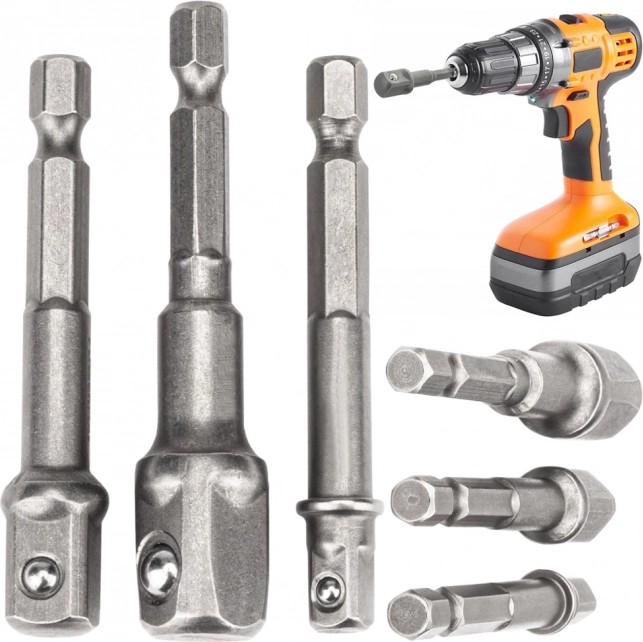 Sada obsahuje tři redukce vyrobené z odolné oceli, což zaručuje jejich dlouhou životnost. Redukce umožňují použití šroubováku s nástrčnými hlavicemi různých rozměrů.