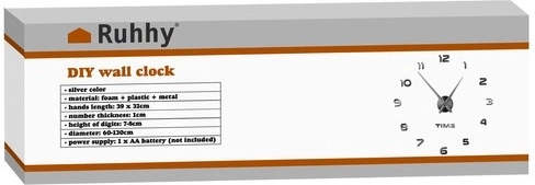 Díky tichému mechanismu s plynulým chodem neruší hodiny při práci ani odpočinku. Samolepicí číslice z EVA pěny drží pevně na většině hladkých povrchů a speciální papírová šablona usnadní přesné vyznačení kruhu. Dlouhé, elegantní ručičky ve stříbrné barvě zvýrazní čistý design.