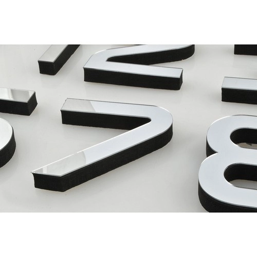 Lesklé stříbrné krytky na číslech vytvářejí moderní 3D efekt, který vynikne na jakékoli stěně a opticky prosvětlí interiér.