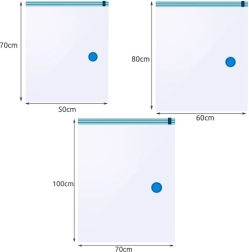 Představujeme univerzální a praktickou sadu vakuových úložných pytlů vhodnou pro domácí uskladnění i cestování. Tyto pytle vám pomohou uspořádat váš prostor tím, že redukují objem uložených věcí až o 80%. Jsou opakovaně použitelné a poskytují vysoký stupeň ochrany proti prachu, vlhkosti a moli.