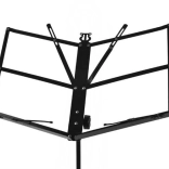Tento malovaný kovový stojan na noty je vybaven trojnohou základnou a regulovatelnou výškou, což umožňuje jeho použití v stoje i v sedě. Stojan lze dokonce umístit na stůl při nastavení na nejnižší výšku. Sklopný pult se snadno přizpůsobí vašim potřebám, zatímco nastavitelný úhel sklonu zabraňuje zavírání not. Vhodný pro profesionály i amatéry.