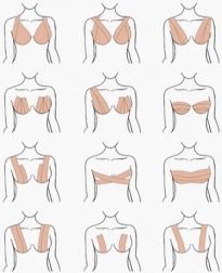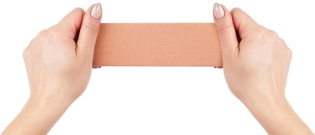 Kousky pásky se snadno lepí na suchou pokožku bez krémů, je nenápadná a snadno kombinovatelná s oblečením.