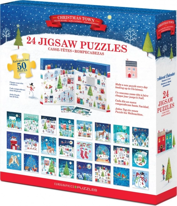 Adventní kalendář EUROGRAPHICS přináší každý den nové mini puzzle s motivy Vánoc. V balení najdete 24 samostatných skládaček, každou o 50 dílcích, které se po složení promění v čtvercové obrázky o rozměru 12,5 × 12,5 cm. V každém okénku je také vytištěná předloha, takže skládání je příjemné jak pro děti, tak dospělé.