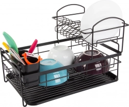 Dvoupatrová konstrukce sušáku na nádobí maximalizuje prostor pro sušení. Horní úroveň pojme až 11 talířů, zatímco dolní části poskytuje dostatek místa pro šálky a misky. Navíc je vybaven odnímatelným zásobníkem na příbory, který lze snadno přemístit podle vašich potřeb.