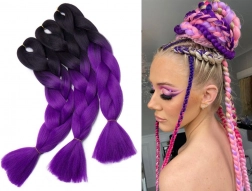 Tento zářivý fialový ombre styl je ideální pro originální účesy, které můžete měnit podle příležitosti. Vytvořte oslnivý vzhled na festivale, karnevalu nebo jiné události pomocí těchto univerzálních copánků.