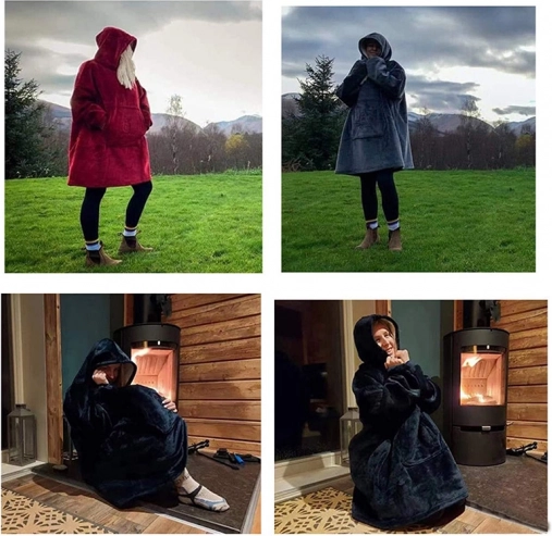 Skvěle se hodí pro chladné večery, lenošení na gauči, práci na notebooku i čtení. Obří kapuce udrží hlavu v teple a poslouží i jako měkký polštářek, zatímco velká přední kapsa pojme telefon, ovladač i drobnosti – nebo jen zahřeje ruce.