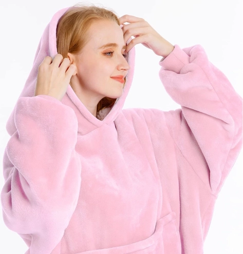 Tato teplá mikina–deka kombinuje výhody deky a mikiny v jednom kousku oblečení. Měkký, sametový povrch a zateplená vnitřní vrstva spolehlivě udrží teplo při domácí pohodě, lenošení na terase nebo večeru u krbu. Světle růžová barva působí jemně a stylově, takže si ji zamiluje celá rodina.