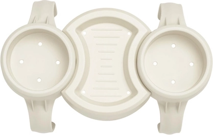 Chytrý doplněk pro pohodové chvíle ve vířivce: dvojitý držák nápojů s centrálním tácem. Nabízí dvě kruhové přihrádky na sklenice, plechovky či lahve a uprostřed praktické místo na drobnosti – brýle, smartphone nebo drobné pochutiny. Odolné provedení z PP/ABS materiálu je připravené na vodu i slunce.
